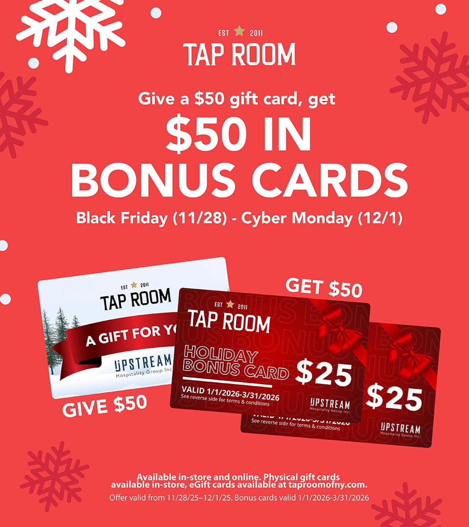 Tap Room is your local casual gathering place for real food and craft beverages — a place to meet friends and make new ones. With nine locations in Bay Shore, Farmingdale, Garden City, Huntington, Jericho, Massapequa Park, Patchogue, Rockville Centre, and Ronkonkoma, we’re all over Long Island and ready to be your place to unwind. Join us for Happy Hour, our daily specials, and live music. Whether you’re here to explore our ever-changing selection of craft beers or just want a bite to eat, we’ve got what you’re craving. Stop by one of our locations and enjoy some great food made fresh in our scratch kitchen, with good people.