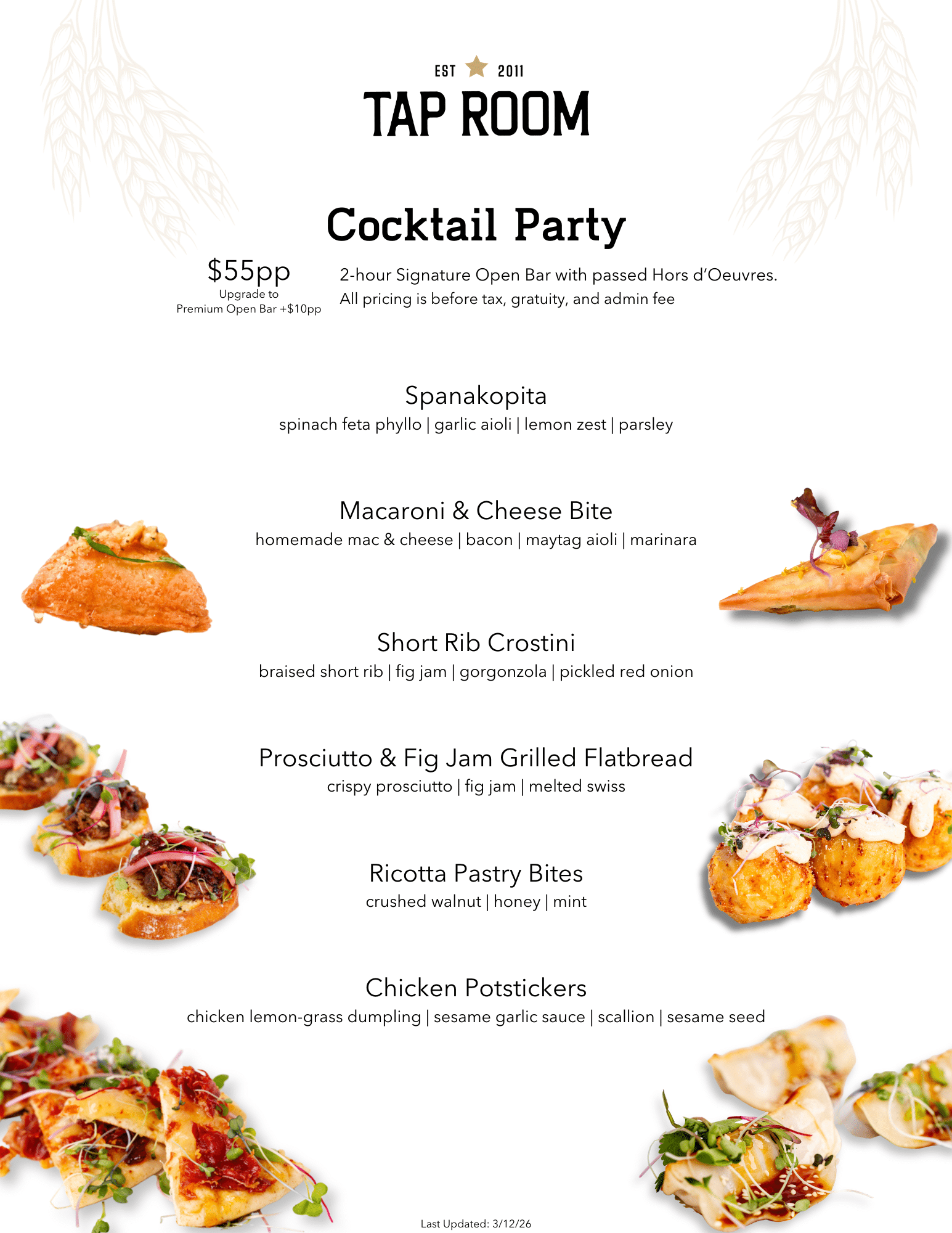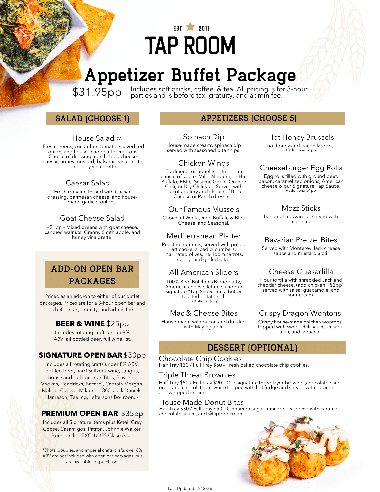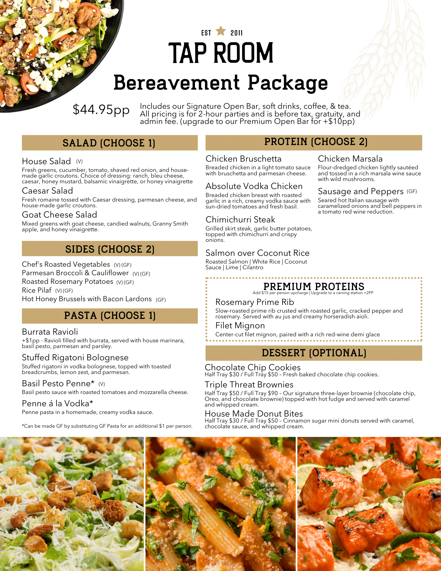 Tap Room also offers off-premise catering. Bring the bar home with our delicious selection of party trays – including apps, entrees and desserts.